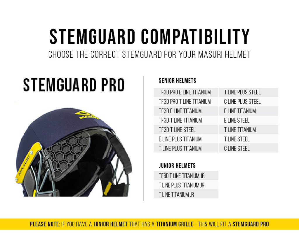 The StemGuard attaches to existing Masuri VS or OS2 helmets with moulded clips and has been designed to give batsman free movement while playing.